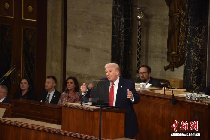 当地时间2月24日晚,好意思国总统特朗普在国会参众两院联席会议上发表国情咨文谈话,聚焦经济、侨民等议题。这是特朗普在本总统任期内初度发表国情咨文。 中新社记者 沙晗汀 摄